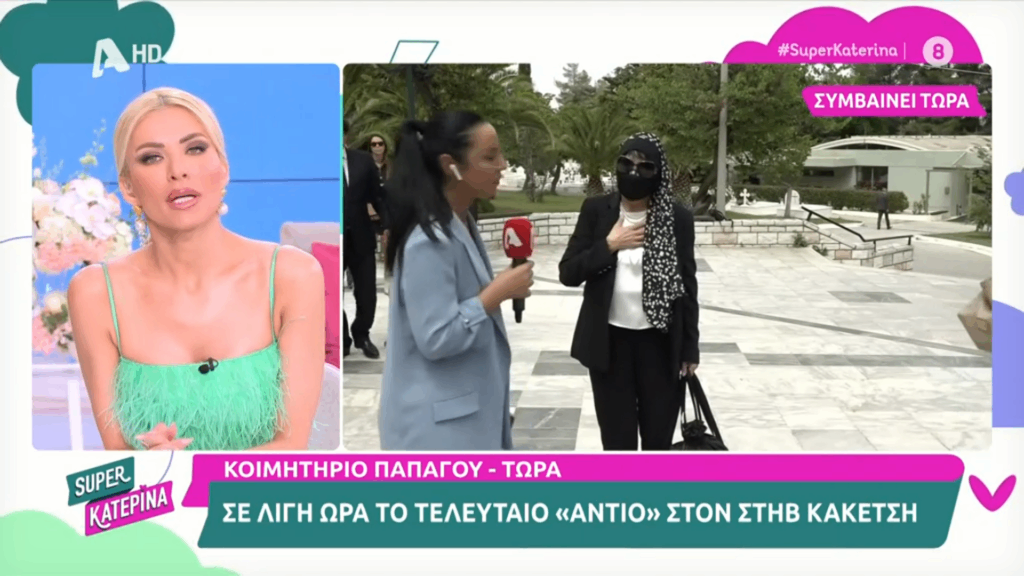 Η Κατιάνα Μπαλανίκα έφτασε στον νεκροταφείο Παπάγου υποβασταζόμενη από τον γιο της Μάκη, ο οποίος είναι καρπός του έρωτα της με τον Στηβ Κακέτση. Η ηθοποιός φανερά συντετριμμένη πήγε να αποτίσει φόρο τιμής στον πρώην σύζυγο της.
