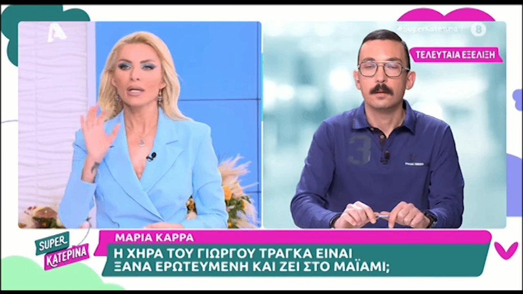 Η ίδια βρήκε πρόσφορο έδαφος όταν προβλήθηκε στην εκπομπή δημοσίευμα του περιοδικού για τη Μαρία Καρρά, τη χήρα του δημοσιογράφου Γιώργου Τράγκα, που τη θέλει να έχει γυρίσει σελίδα στη ζωή της, ζώντας με νέο σύντροφο στο Μαϊάμι.