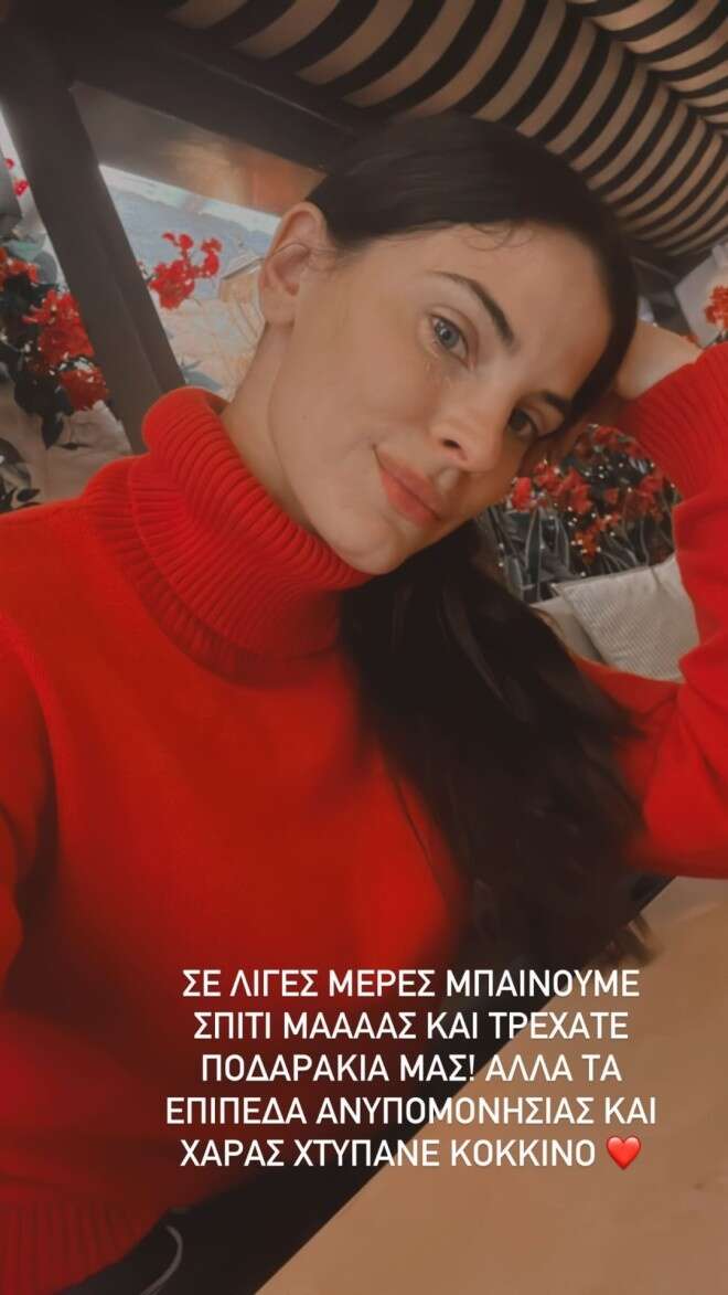 «Σε λίγες ημέρες μπαίνουμε σπίτι μας και τρεχάτε ποδαράκια μας! Αλλά τα επίπεδα ανυπομονησίας και χαράς χτυπάνε κόκκινο» αποκάλυψε η Χριστίνα Μπόμπα.