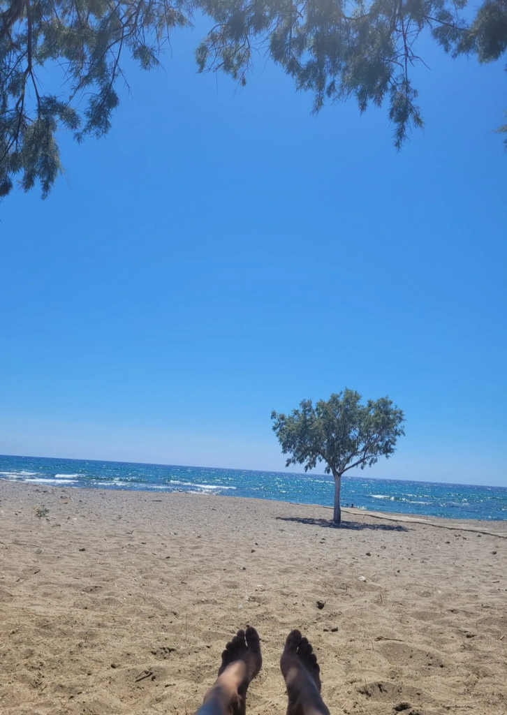 «Απλά ,κάτω από τ’ αρμυρίκια, ούτε ξαπλώστρες ούτε ομπρέλες ούτε ελάχιστη κατανάλωση. Μόνο μέγιστη κατανάλωση του τοπίου και της ηρεμίας. Κρητη!#Crete.#my mother’s land#purebeauty», έγραψε στη λεζάντα της φωτογραφίας που πόσταρε στη σελίδα της στο facebook.