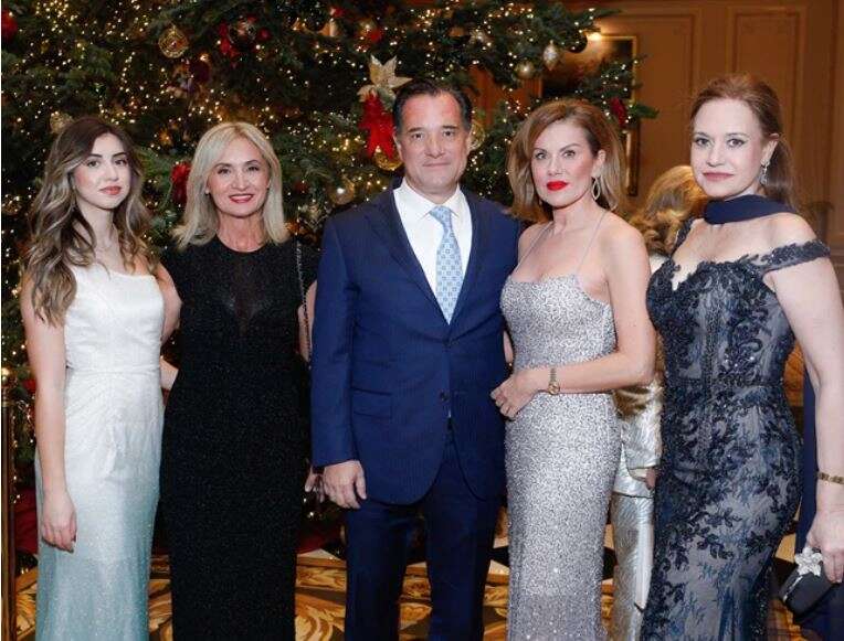 Ο Αδωνις Γεωργιάδης και η σύζυγός του, Ευγενία Μανωλίδου που τα τελευταία χρόνια έχει αφοσιωθεί στο έργο για την εκμάθηση και τη διάδοση των αρχαίων ελληνικών, πραγματοποίησαν μία κοινή εμφάνιση στο ξενοδοχείο Μεγάλη Βρεταννία, σε χριστουγεννιάτικο δείπνο για φιλανθρωπικό σκοπό. Η μαέστρος εντυπωσίασε φορώντας μία μάξι απαστράπτουσα δημιουργία που συνδύασε με ένα εντυπωσιακό ζευγάρι σκουλαρίκια. Στο μακιγιάζ της τόνισε τα χείλη της με ένα κόκκινο lipstick και τα ζυγωματικά της με ένα γήινο blush.