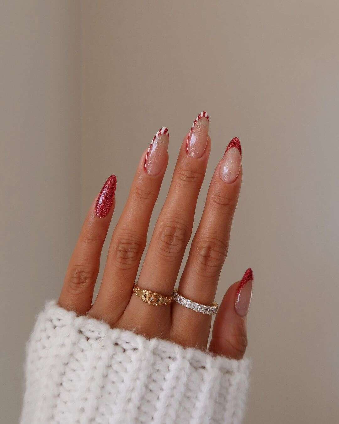 Δεν χρειάζεται να δημιουργήσεις πολύπλοκα σχέδια στα νύχια σου για να έχεις ένα χριστουγεννιάτικο μανικιούρ. Απλά μπορείς να χρησιμοποιήσεις ένα απλό βερνίκι με glitter, το οποίο θα αναδείξει ακόμα και το φυσικό χρώμα των νυχιών σου. Απλώς το βάφεις στα νύχια σου, το σφραγίζεις με ένα top coat και… το αποτέλεσμα είναι έτοιμο!
