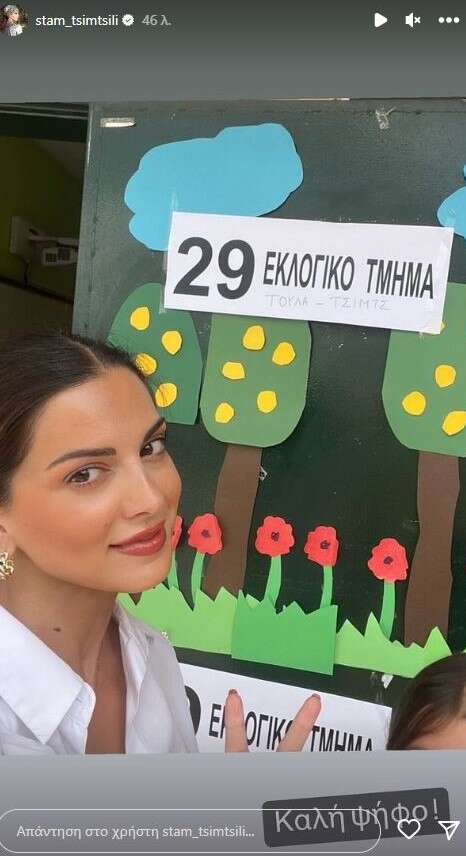 Η Σταματίνα Τσιμτσιλή δεν θα μπορούσε να μη πάει και εκείνη να ψηφίσει και έτσι βρέθηκε στο 34ο Δημοτικό Σχολείο Αθηνών στον Περισσό, λίγο μετά το μεσημέρι της Κυριακής ενώ μοιράστηκε και δύο στόρι από το εκλογικό τμήμα.