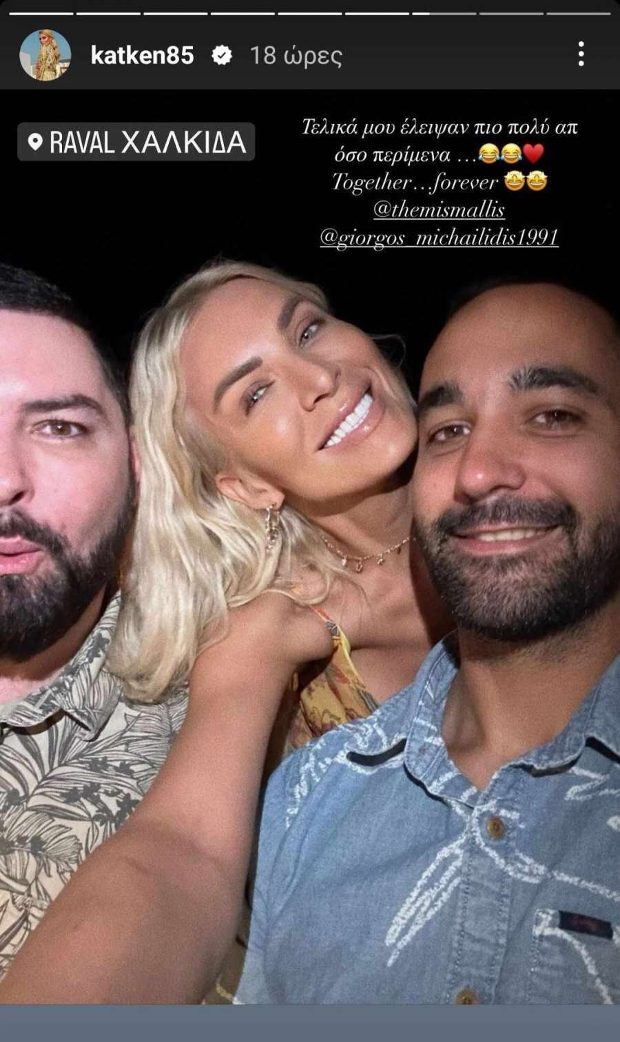 Αν και η ίδια μάς έχει συνηθίσει σε έντονα μακιγιάζ ακόμα και την καλοκαιρινή περίοδο, στα stories του Instagram της δημοσίευσε μια selfie που τράβηξαν οι τρεις τους, με εκείνη να είναι ιδιαίτερα ευδιάθετη και χαμογελαστή, ενώ ήταν μια από τις λίγες φορές που προτίμησε να κάνει ένα σχεδόν διάφανο μακιγιάζ, αφήνοντας τη φυσική ομορφιά της να αναδειχθεί.