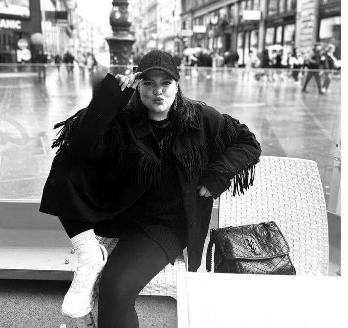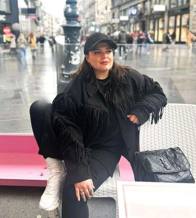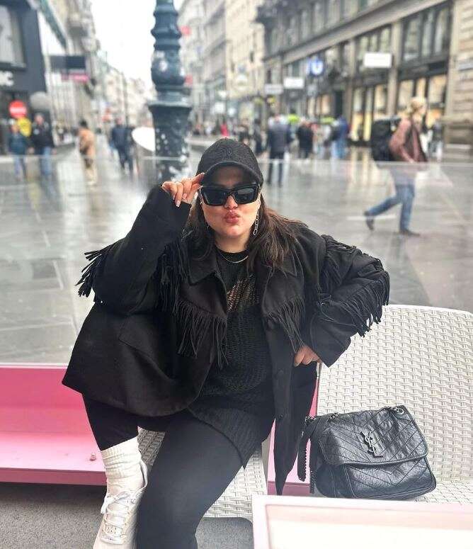 Σε ένα από αυτά τα στιγμιότυπα τη βλλέπουμε να φορά ένα cozy και άνετο travel σύνολο, στο οποίο έχει συνδυάσει ένα μαύρο oversized πλεκτό πουλόβερ με μαύρο κολάν και λευκά sneakers. Ολοκλήρωσε το ταξιδιωτικό σύνολό της με ένα μαύρο τζάκετ με κρόσσια, ένα καπέλο και μία δερμάτινη ΥSL τσάντα ώμου.