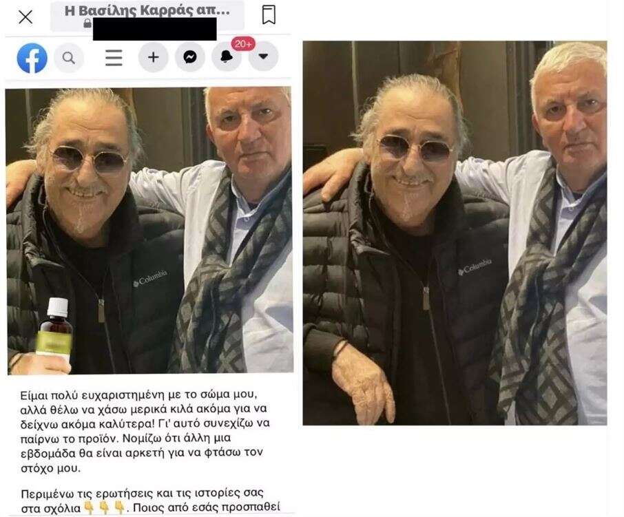 Βασίλης Καρράς: Προωθούσαν σκεύασμα αδυνατίσματος μέσω “πειραγμένων” φωτογραφιών του