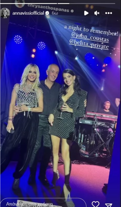 Μία βραδινή έξοδο πραγματοποίησαν ο Γιάννης και η Δήμητρα Κούστα, το βράδυ της Τετάρτης. Τη φωτογραφία του ζευγαριού από εκδήλωση στην οποία τραγούδησε η Άννα Βίσση, ανάρτησε ο επιχειρηματίας Χρύσανθος Πανάς.