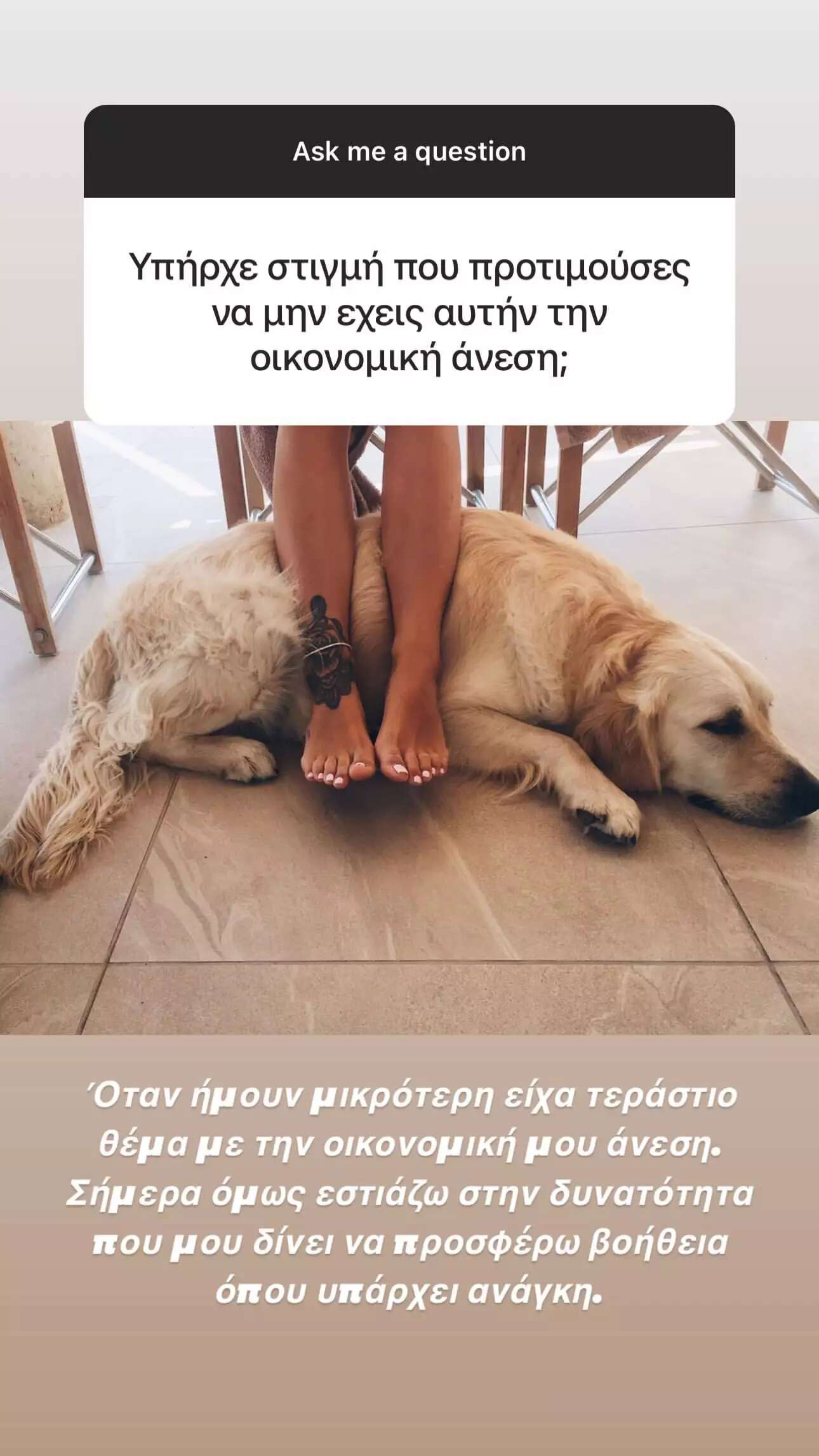 «Όταν ήμουν μικρότερη, είχα τεράστιο θέμα με την οικονομική μου άνεση. Σήμερα όμως εστιάζω στη δυνατότητα που μου δίνει να προσφέρω βοήθεια όπου υπάρχει ανάγκη» αποκάλυψε σε άλλο σημείο η Εριέττα Κούρκουλου.