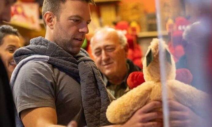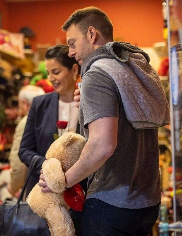 Λίγο πριν φτάσει, ξέφυγε από την παρέα, μπήκε σε μαγαζάκι με είδη δώρων και αγόρασε, όπως κατέγραψε το trikalavoice.gr ένα αρκουδάκι ενόψει…. Αγίου Βαλεντίνου.