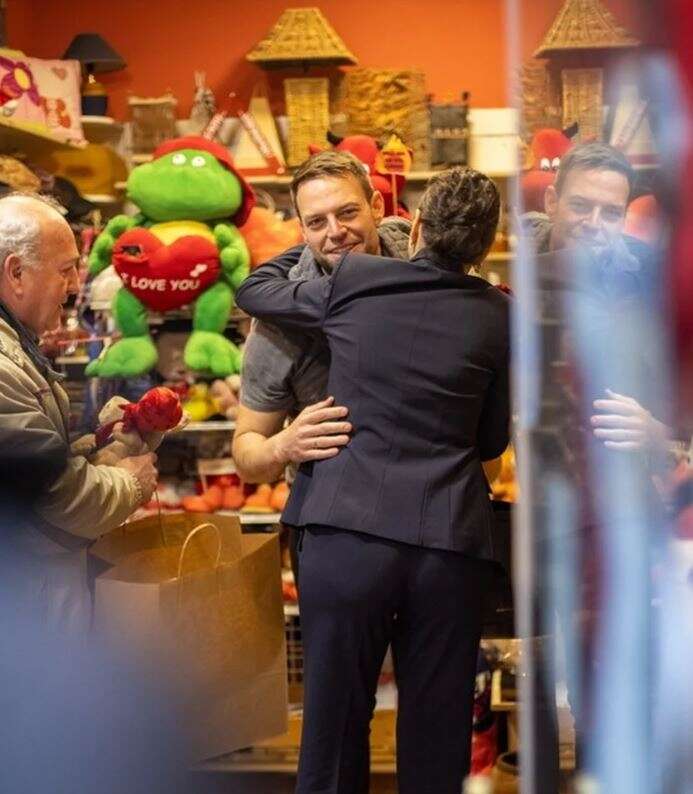 Λίγο πριν φτάσει, ξέφυγε από την παρέα, μπήκε σε μαγαζάκι με είδη δώρων και αγόρασε, όπως κατέγραψε το trikalavoice.gr ένα αρκουδάκι ενόψει…. Αγίου Βαλεντίνου.