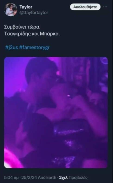 Τις τελευταίες ώρες κυκλοφορεί στο twitter φωτογραφία στην οποία Φίλιππος Τσαγκρίδης και Δανάη Μπάρκα παρουσιάζονται να ανταλλάσσουν ένα παθιασμένο φιλί σε βραδινή τους έξοδο.