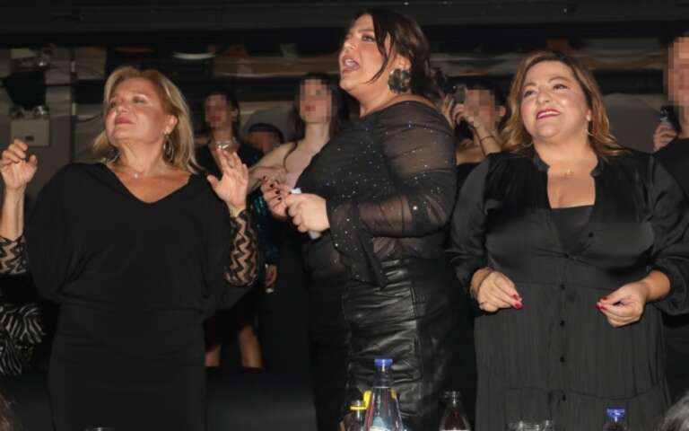 Οι τρεις τους βρέθηκαν στο νυχτερινό κέντρο, όπου εμφανίζεται η Δέσποινα Βανδή και ο Γιώργος Σαμπάνης και ο φωτογραφικός φακός τις απαθανάτισε.