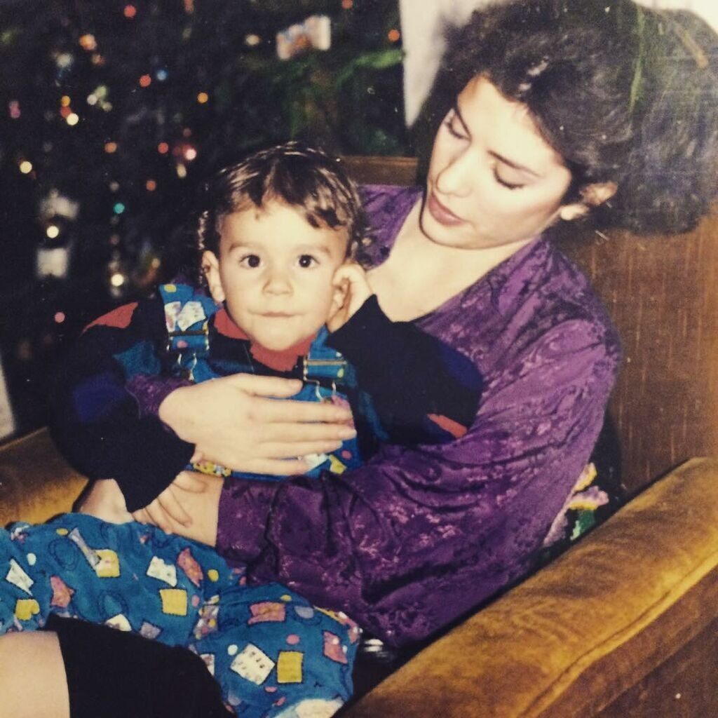 Έτσι, σε μία σπάνια φωτογραφία, η παρουσιάστρια στην εφηβεία ποζάρει μπροστά στο Χριστουγεννιάτικο δέντρο, έχοντας αγκαλιά τον αδελφό της, ο οποίος είναι πολύ μικρός.