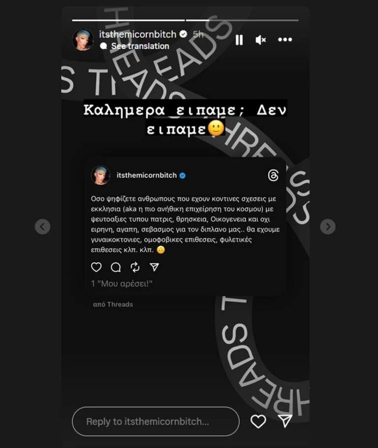 Στην συνέχεια αναφέρθηκε και στην εκκλησία καθώς είναι και γνωστή η στενή σχέση με τη θρησκεία του Νίκου Οικονομόπουλου. «Όσο ψηφίζετε ανθρώπους που έχουν κοντινές σχέσεις με εκκλησία (aka η πιο ανήθικη επιχείρηση του κόσμου) με ψευτοαξίες πατρίς, θρησκεία, οικογένεια και όχι ειρήνη, αγάπη, σεβασμός για τον διπλανό μας… θα έχουμε γυναικοκτονίες, ομοφοβικές επιθέσεις, φυλετικές επιθέσεις κλπ, κλπ»