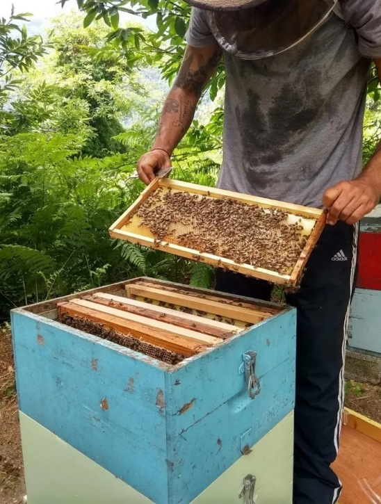 Με τα χρόνια, όταν ήρθε η ανάγκη να γεμίσω αυτή την τρύπα στην καρδιά, γιατί δεν πήγα αμέσως, αποφάσισα ότι ok, το κάνω, το δοκιμάζω. Μέσα σε αυτά τα χρόνια, σκεφτόμουν τι θα έκανα εκεί. Ο θεός έφερε την μελισσοκομεία μπροστά μου. Γνώρισα έναν μελισσοκόμο, του είπα: «Να έρθω να δω τα μελίσσια;» Μου λέει «Έλα». Όταν μου άνοιξε ένα μελίσσι μου άρεσε, είπα «Αυτό θα μου άρεσε να κάνω», χάρηκε η καρδούλα μου. Μετά ξεκίνησα λίγες σπουδές και σεμινάρια και έπιασα την μελισσοκομία ώστε να έχω κάτι να κάνω πάνω στο βουνό.