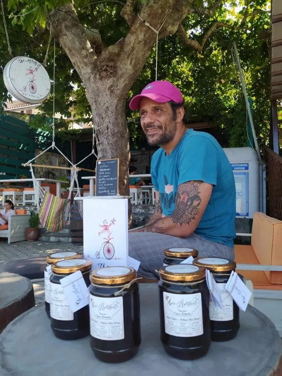 Με τα χρόνια, όταν ήρθε η ανάγκη να γεμίσω αυτή την τρύπα στην καρδιά, γιατί δεν πήγα αμέσως, αποφάσισα ότι ok, το κάνω, το δοκιμάζω. Μέσα σε αυτά τα χρόνια, σκεφτόμουν τι θα έκανα εκεί. Ο θεός έφερε την μελισσοκομεία μπροστά μου. Γνώρισα έναν μελισσοκόμο, του είπα: «Να έρθω να δω τα μελίσσια;» Μου λέει «Έλα». Όταν μου άνοιξε ένα μελίσσι μου άρεσε, είπα «Αυτό θα μου άρεσε να κάνω», χάρηκε η καρδούλα μου. Μετά ξεκίνησα λίγες σπουδές και σεμινάρια και έπιασα την μελισσοκομία ώστε να έχω κάτι να κάνω πάνω στο βουνό.