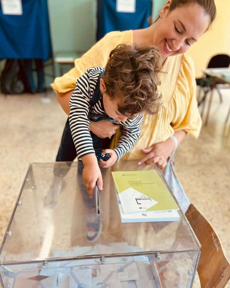 Η Κλέλια Πανταζή, η οποία περιμένει το τρίτο της παιδί, πήγε στο εκλογικό κέντρο, συνοδευόμενη από τον γιο της και στη συνέχεια η πρώην αθλήτρια δημοσίευσε φωτογραφίες.