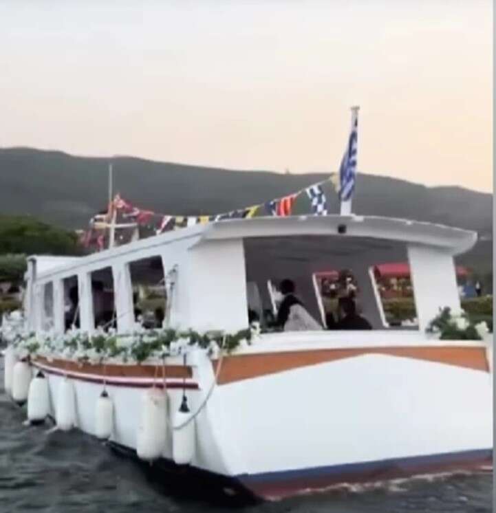 Η τελετή του γάμου πραγματοποιήθηκε την περασμένη Κυριακή στο εκκλησάκι του Τιμίου Σταυρού, που βρίσκεται στο τέλος του παραλιακού δρόμου του Πόρου, προσφέροντας εντυπωσιακή θέα στη θάλασσα και στη γραφική πόλη. Για την τελετή, παρευρέθηκε ο Αρχιεπίσκοπος Ελπιδοφόρος από την Αμερική, ο οποίος διατηρεί στενούς φιλικούς δεσμούς με τις δύο οικογένειες.