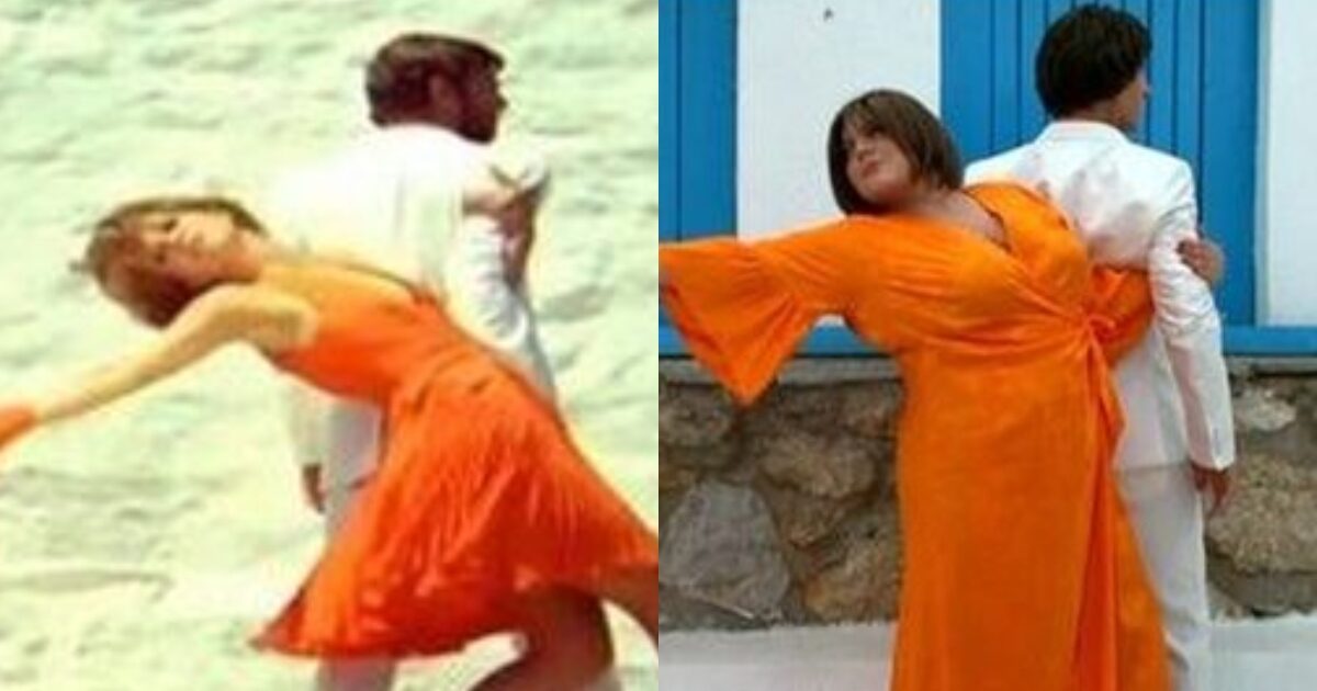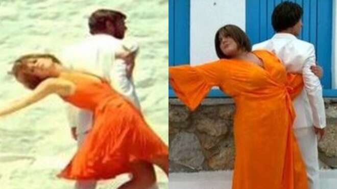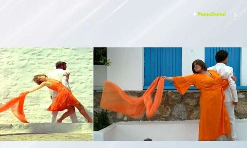 Στην προσπάθειά τους να κάνουν μία πιστή αντιγραφή της σκηνής με το τραγούδι, η Δανάη Μπάρκα φόρεσε ένα πορτοκαλί φουστάνι, παρόμοιο με αυτό της ηθοποιού και ο Άρης Καβατζίκης ένα λευκό κοστούμι, σχεδόν ίδιο με αυτό του Λάκη Κομνηνού.