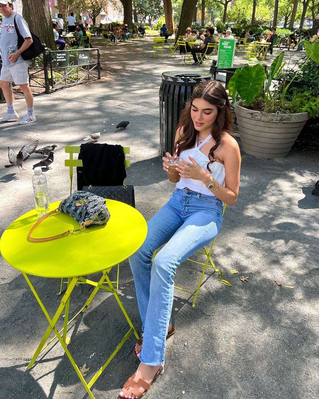 Η 19χρονη μοιράζεται την ίδια αγάπη για τη μόδα με τη μητέρα της και παρακολούθησε δύο επιδείξεις στη χθεσινή ημέρα της AXDW 2023. Για την εμφάνισή της επέλεξε lace mini φόρεμα και flat slingbacks.