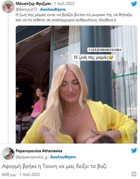 Το παρακάτω βίντεο προκάλεσε θετικές και αρνητικές αντιδράσεις και το hashtag #Τουνη πήρε… φωτιά στο twitter. Κάποιοι επικρότησαν την κίνησή της να θηλάσει δημόσια κι άλλοι την αποδοκίμασαν…
