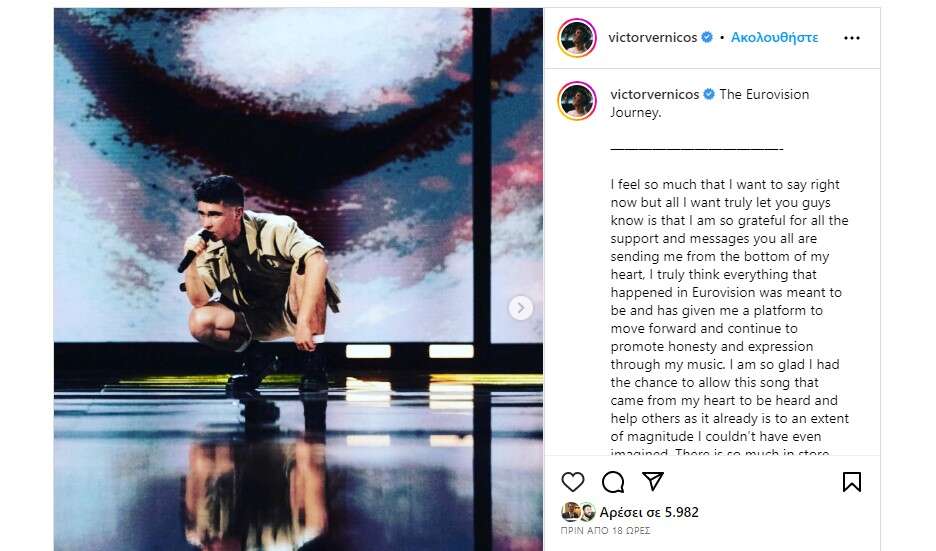 Βίκτωρας Βερνίκος: Η πρώτη ανάρτηση του 16χρονου που εκπροσώπησε την Ελλάδα στη φετινή Eurovision