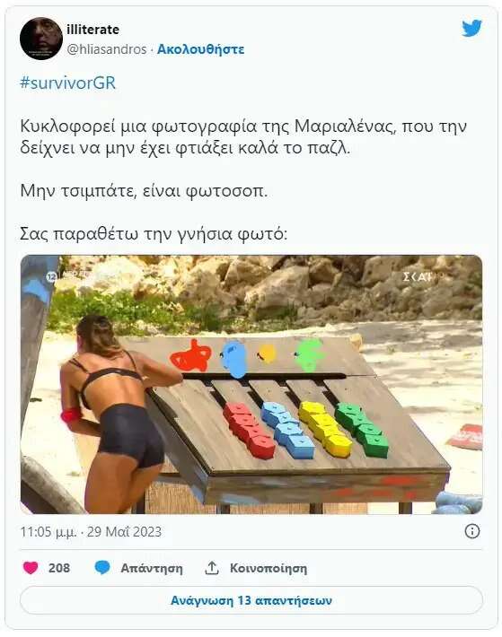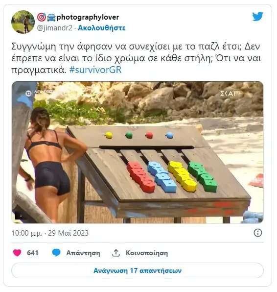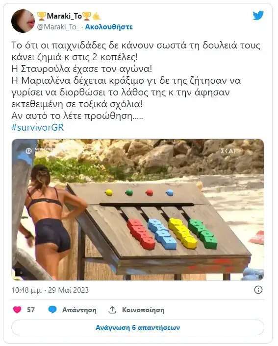 Οι παιχνίδαδες του ριάλιτι επιβίωσης του ΣΚΑΪ δεν παρατήρησαν το λάθος στα χρώματα του παζλ της Μαριαλένας, όχι όμως και το Twitter. Έτσι, ξεκίνησε το «γλέντι», αφήνοντας αιχμές ότι η παραγωγή ευνοεί επίτηδες κάποιους παίκτες.