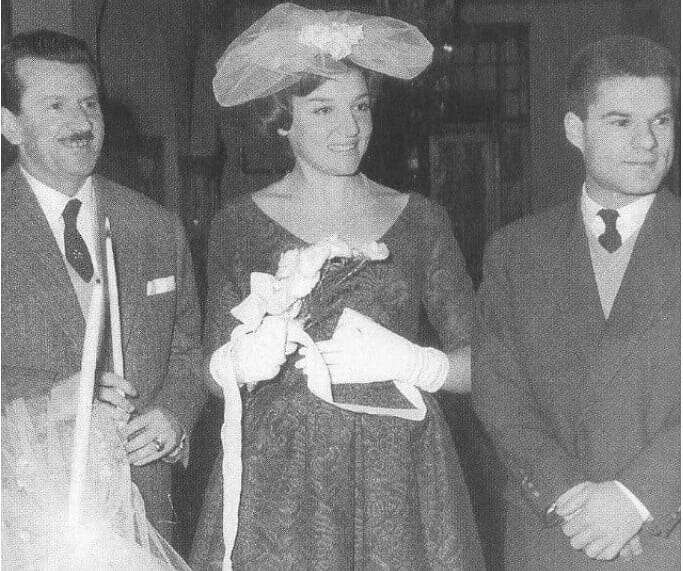 Με σύνολο από σχέδιο του Dior που είχε αντιγράψει σε μοδίστρα στην Αθήνα και κουμπάρο τον αγαπημένο τους φίλο και συνεργάτη στις ταινίες «Έγκλημα στα παρασκήνια» και «Έγκλημα στο Κολωνάκι» και κορυφαίο συγγραφέα ελληνικών αστυνομικών μυθιστορημάτων Γιάννη Μάρη.