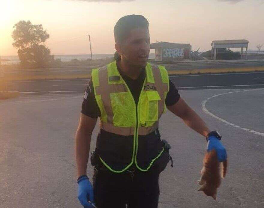 Έτσι, τοποθέτησε στην άκρη του δρόμου το περιπολικό και έπιασε το γατάκι, το οποίο αποδείχτηκε λιγάκι… ατίθασο!