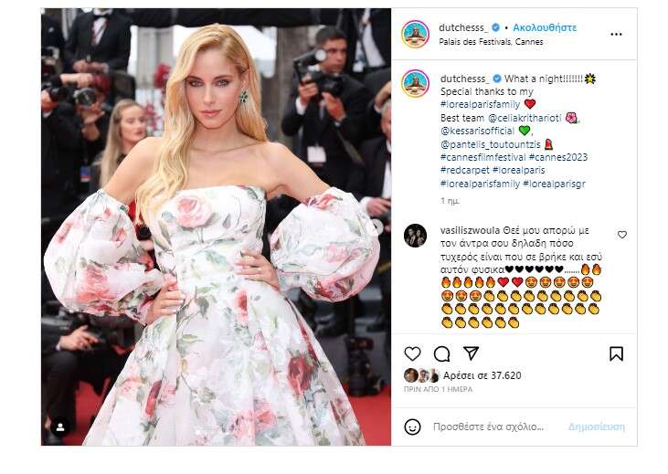 Μάλιστα, η Ελληνίδα καλλονή δημοσίευσε φωτογραφίες της από τη μαγική βραδιά στον προσωπικό της λογαριασμό στο Instagram και όπως ήταν αναμενόμενο τα like και τα σχόλια έπεσαν βροχή.