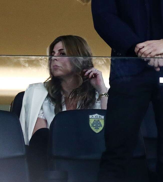 Η Αθανασία Μαρινάκη αγχωμένη μαζί με τις κόρες της στην Opap Arena: Η σπάνια εμφάνιση της Ειρήνης και της Ελένης Μαρινάκη