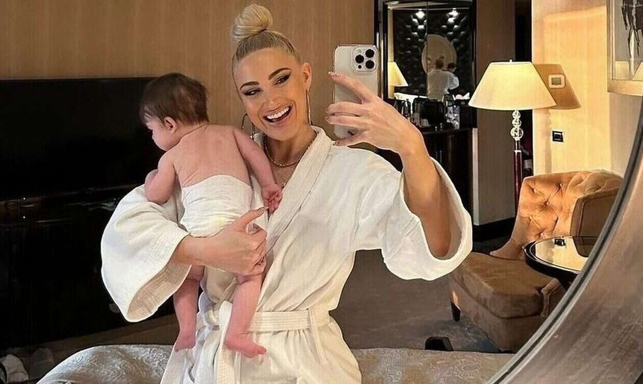 Το ζευγάρι βρέθηκε στην Ψαρρού και η κάμερα του Mykonos Live TV ήταν εκεί και τους απαθανάτισε. Πατέρας και γιος είχαν ξαπλώσει στην ξαπλώστρα και έπαιζαν. Κάποια στιγμή όπως είναι και το φυσιολογικό για ένα βρέφος χρειάστηκε να του αλλάξει την πάνα, όπως και έκανε και στη συνέχεια έχοντας τον στην αγκαλιά της έκανε και τις πρώτες του βουτιές.
