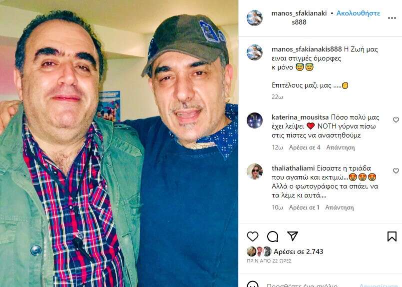 Ωστόσο, ο αγαπημένος τραγουδιστής έκανε επανεμφάνιση μέσα από φωτογραφία στα social media, που ανέβασε το μεσημέρι της Τετάρτης (17/5) ο Μάνος Σφακιανάκης.Σημειώνεται πως πριν από λίγους μήνες, ρεπορτάζ του “Πρωινού” είχε αναφέρει πως ο Νότης Σφακιανάκης δέχτηκε πρόταση να εμφανιστεί σε νυχτερινό μαγαζί της Θεσσαλονίκης.