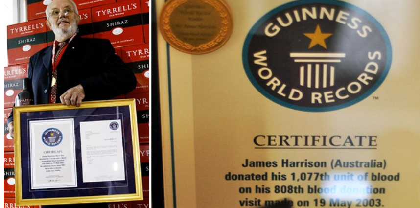 Ένας αιμοδότης κατάφερε να χαρακτηριστεί ως ο άνθρωπος με το «χρυσό αίμα» μιας και δάνεισε το αίμα του πάνω από 1.000 φορές σε 60 χρόνια. Ο ίδιος χαρακτηρίστηκε ως ο σούπερ ήρωας του σύγχρονου κόσμου, αφού έχει σώσει περισσότερα από δύο εκατομμύρια μωρά με τη σπανιότητα του αίματός του.