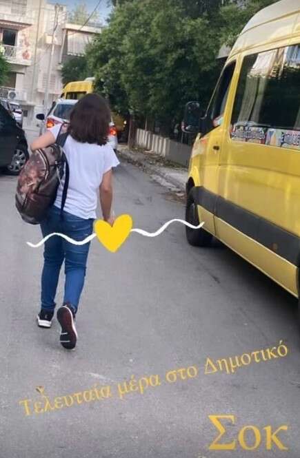 “Τελευταία μέρα στο Δημοτικό. Σοκ.”, έγραψε συγκινημένη η Κατερίνα Καραβάτου, αναρτώντας την εν λόγω φωτογραφία στον προσωπικό της λογαριασμό στο Instagram.