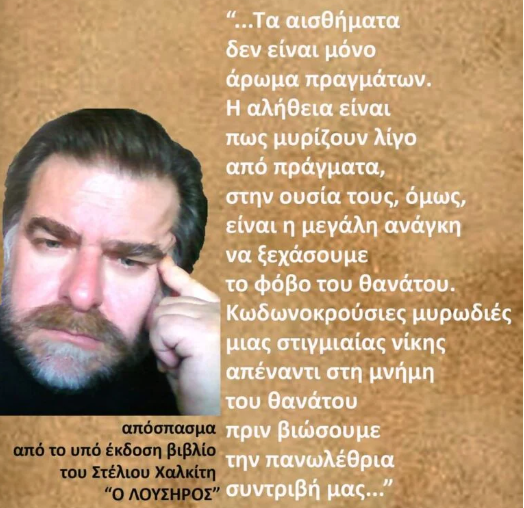 Ο δημιουργός του “Λούσηρου”, του “De Profundis”, του “Μάργκινους Μόριους” καιρού τελευταίου, που προκάλεσε μεγάλη έκπληξη στα ελληνικά γράμματα και έλαβε μοναδικές κριτικές, τις “Απαράφθορες”, με τις γυναίκες της Καλύμνου να αναδύονται μέσα από τη μοναδική προσέγγιση του Στέλιου Χαλκίτη, έχασε τη μάχη με τον θάνατο, με τα έργα του όμως να μένουν ζωντανή κληρονομιά σε κάθε γενιά.