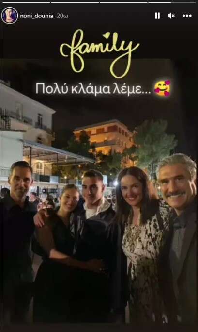 «Πολύ κλάμα λέμε» έγραψε στην οικογενειακή φωτογραφία η Νόνη Δούνια δηλώνοντας έτσι τη συγκίνησή της για τον γιο της ο οποίος ξεκινά ένα νέο κεφάλαιο στη ζωή του, μετά το σχολείο.