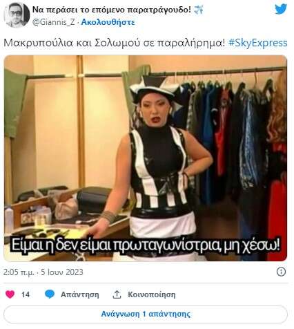 «Θύελλα» αντιδράσεων ξεσηκώθηκε στο Twitter μετά τις δηλώσεις συμπαράστασης της Μαρίας Σολωμού στη Ζέτα Μακρυπούλια, μετά τα παράπονα της δεύτερης για την αεροπορική εταιρεία. Φυσικά όλα ξεκίνησαν όταν έγινε viral στα social media έχει γίνει η εμπειρία της Ζέτας Μακρυπούλια με την εταιρεία Sky Express, όταν διαμαρτυρήθηκε για την πτήση που έχασε, καθώς καθυστέρησε μερικά λεπτά.