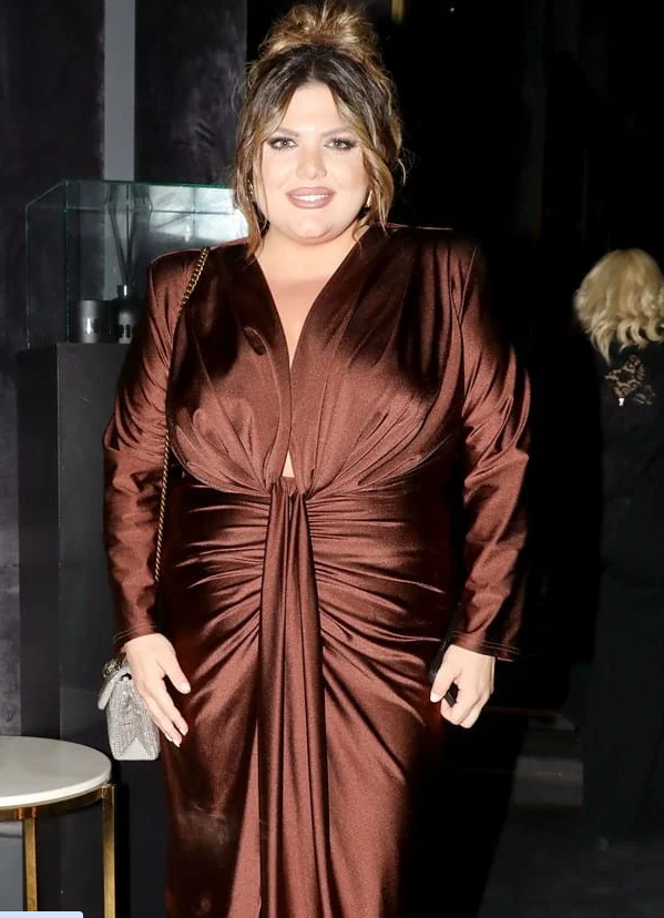 Λίγο πριν την ολοκλήρωση των εμφανίσεων, η Δανάη Μπάρκα βρέθηκε στο NOX προκειμένου να απολαύσει τη Μαρινέλλα και δεν παρέλειψε φυσικά να φωτογραφηθεί μαζί της. Η νεαρή παρουσιάστρια επέλεξε να φορέσει ένα άκρως εντυπωσιακό φόρεμα, σατέν σε καφέ απόχρωση το οποίο αγκάλιαζε υπέροχα τις καμπύλες της. Τα μαλλιά της τα έπιασε σε έναν εντυπωσιακό και πληθωρικό κότσο, χτένισμα που δεν θα περιμέναμε από τη Δανάη, χωρίς αυτό να σημαίνει ότι δεν της πήγαινε πολύ.