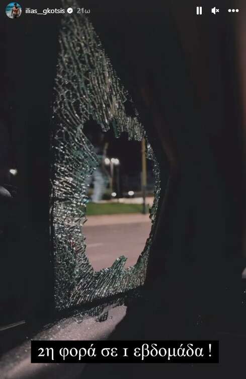 Πιο συγκεκριμένα ο πρώην παίκτης του Survivor ανέβασε βίντεο που δείχνει το σπασμένο τζάμι του οχήματος. Στην περιγραφή γράφει «2η φορά σε μια εβδομάδα»
