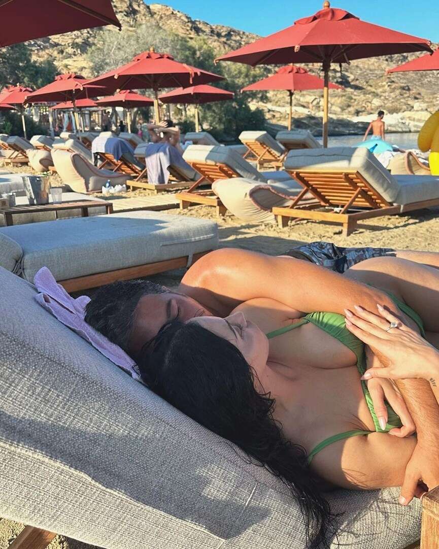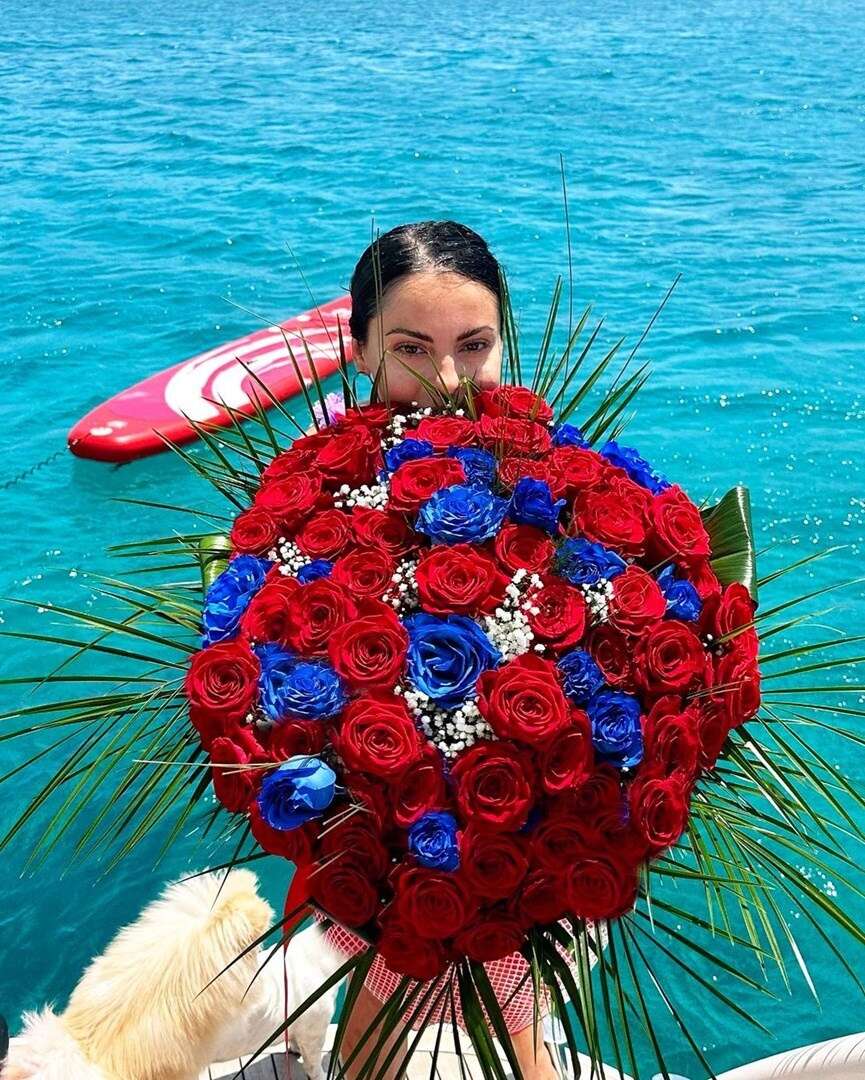 Το μοντέλο και επιχειρηματίας μοιράστηκε με τους διαδικτυακούς της φίλους μερικές φωτογραφίες από την παραλία, όπου πόζαρε με μια τεράστια υπέροχη ανθοδέσμη αλλά και αγκαλιά με τον σύντροφό της, σε ένα σπάνιο στιγμιότυπο.