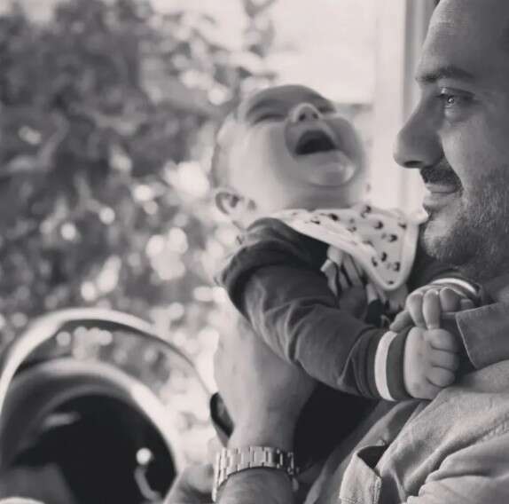 Στη νέα φωτογραφία που ανέβασε στον προσωπικό του λογαριασμό, ο ίδιος κρατά αγκαλιά τον 11 μηνών γιο του με τον μικρό να γελάει.
