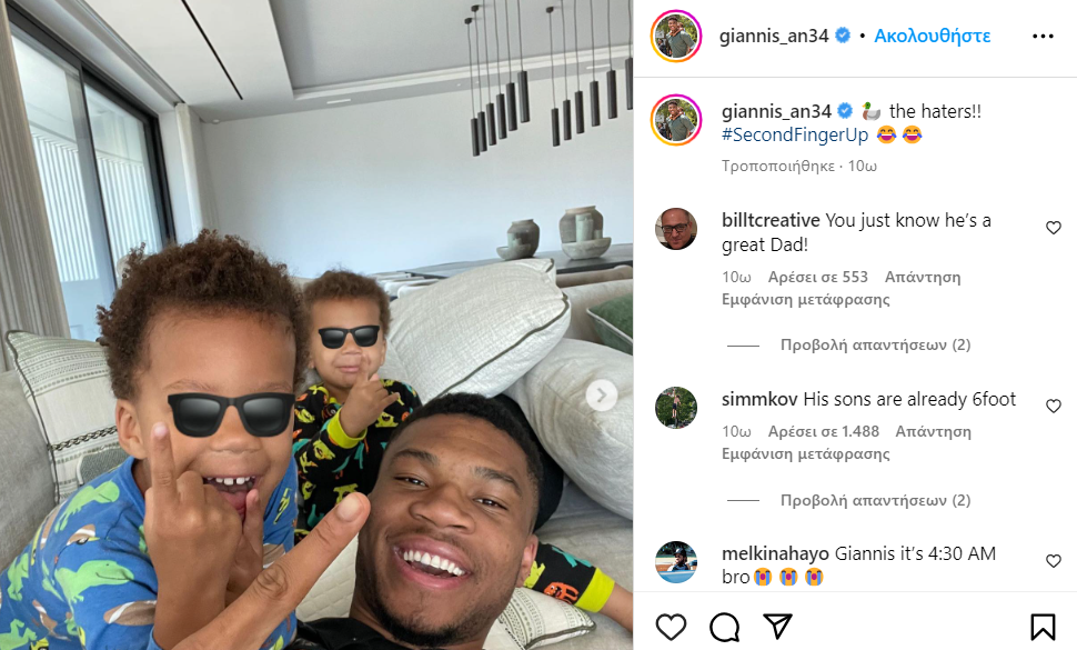 Ο σούπερσταρ του NBA μάλιστα αγόρασε και ένα… διαστημικό σπίτι στο Ψυχικό, το οποίο θα απολαμβάνει η οικογένειά του. Ενώ και ο ίδιος σε κάθε ευκαιρία περνάει ποιοτικό χρόνο με τους 2 γιους του και δεν τους χορταίνει. Κάτι που το αποδεικνύει και από τις δημοσιεύσεις του στο Instagram. Ο Γιάννης, «ανέβασε» ορισμένες φωτογραφίες με τους δύο γιους του, όπου η χαρά στο πρόσωπό του δεν κρύβεται.