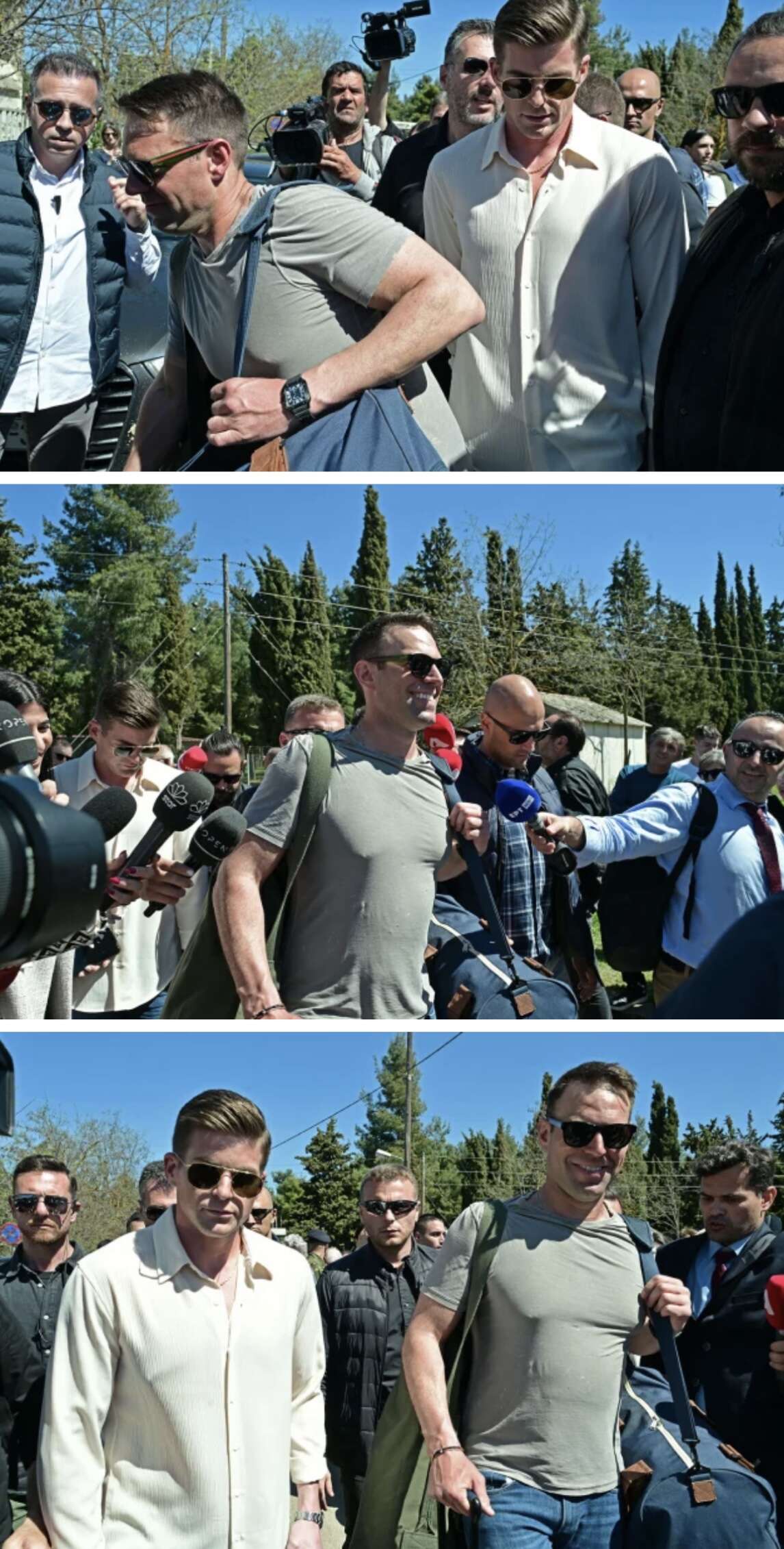 Στην πύλη του στρατοπέδου τον κ. Κασσελάκη περίμεναν οι γονείς του και ο σύζυγός του, Τάιλερ Μακμπέθ, με τον πρόεδρο του ΣΥΡΙΖΑ να είναι ευδιάθετος.