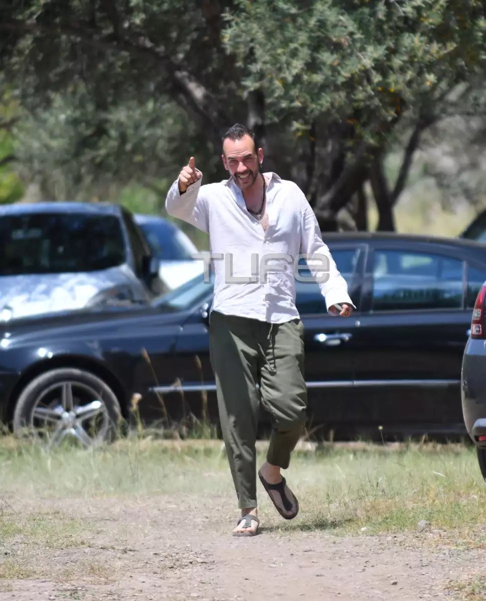 Χαλαροί και ευδιάθετοι και οι δυο χαιρέτησαν τους φωτογράφους και δημοσιογράφους που βρίσκονταν εκεί ποζάροντας στο φακό με τον τραγουδιστή να τους ευχαριστεί και να κάνει πλάκα μαζί τους.