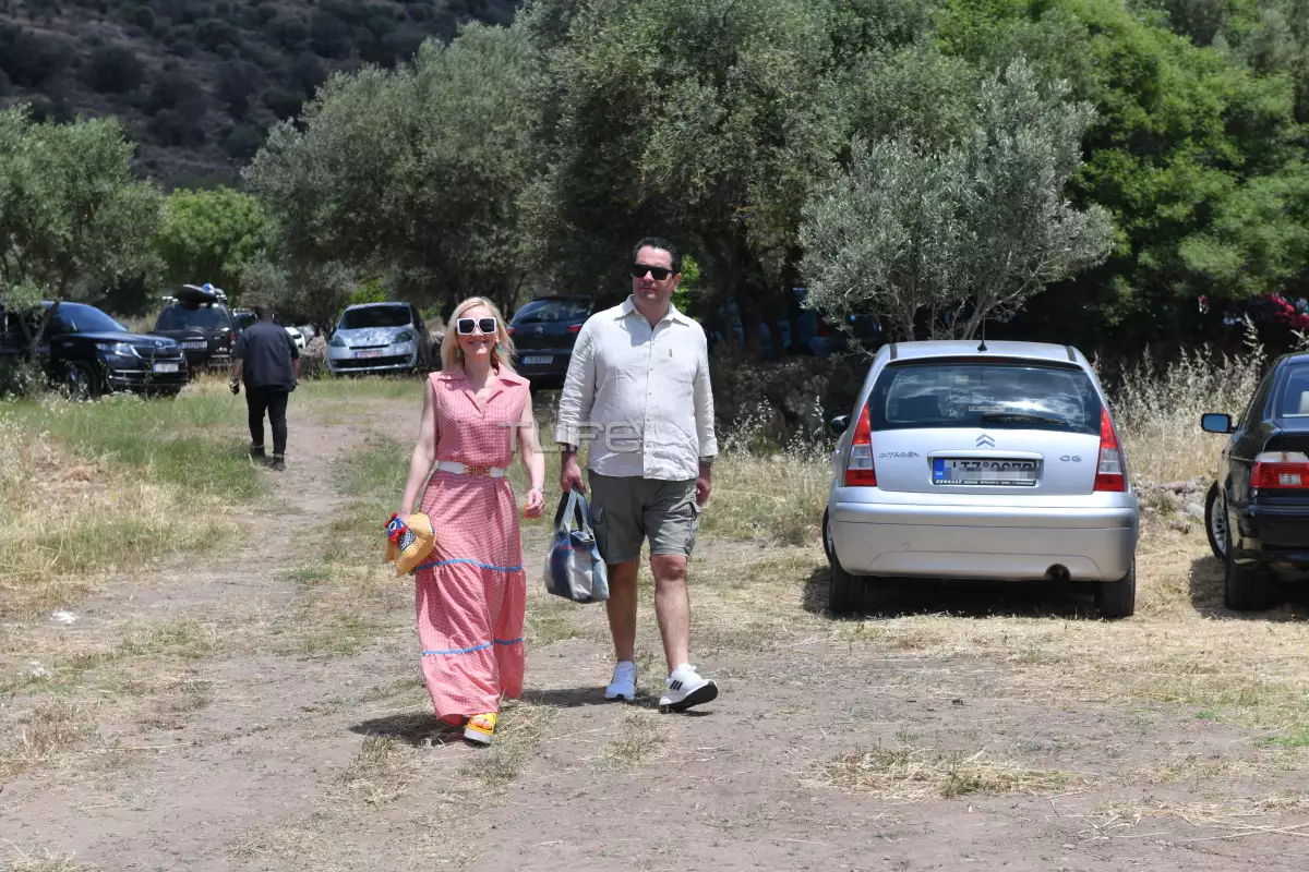 Οι καλεσμένοι του ζευγαριού, άρχισαν να φτάνουν στο σημείο λίγο μετά τις 13.00 ενώ ο Πάνος Μουζουράκης με τη Μαριλού Κόζαρη έφτασαν μερικά λεπτά πριν τις 15.00.