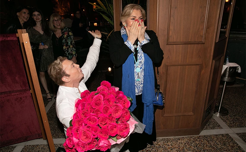 Ένα μεγάλο μπουκέτο τριαντάφυλλα της πρόσφερε ο μοναδικός performer Τάκης Ζαχαράτος και αργότερα όλοι μαζί απόλαυσαν το δείπνο που είχε επιμεληθεί η ομάδα του μαγαζιού, ειδικά για την αγαπημένη καλλιτέχνιδα.