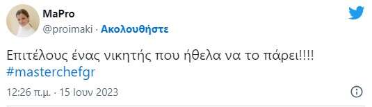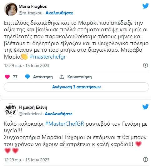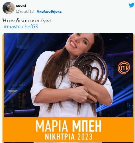 Η αναρτήσεις στο Twitter για τη Μαρία Μπέη και τη νίκη της στο Masterchef