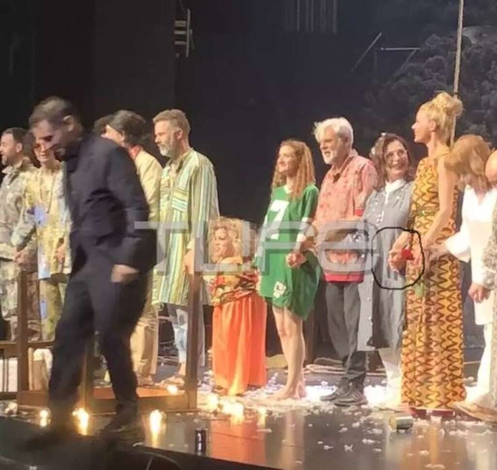 Οι τρεις τους, αφού συνομίλησαν για λίγα λεπτά έξω από τον χώρο του θεάτρου στη συνέχεια κατευθύνθηκαν στην αίθουσα και παρακολούθησαν την παράσταση με μεγάλο ενδιαφέρον από την πρώτη σειρά.