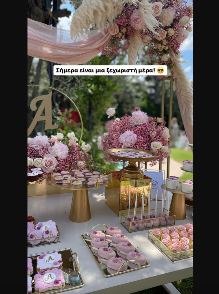 Ο Άκης Πετρετζίκης αλλά και κάποιοι συνεργάτες του στη βάπτιση, μας έδειξαν και κομμάτι από το candy bar, το μενού, τις μπομπονιέρες και τον στολισμό που ήταν φουλ του ροζ.